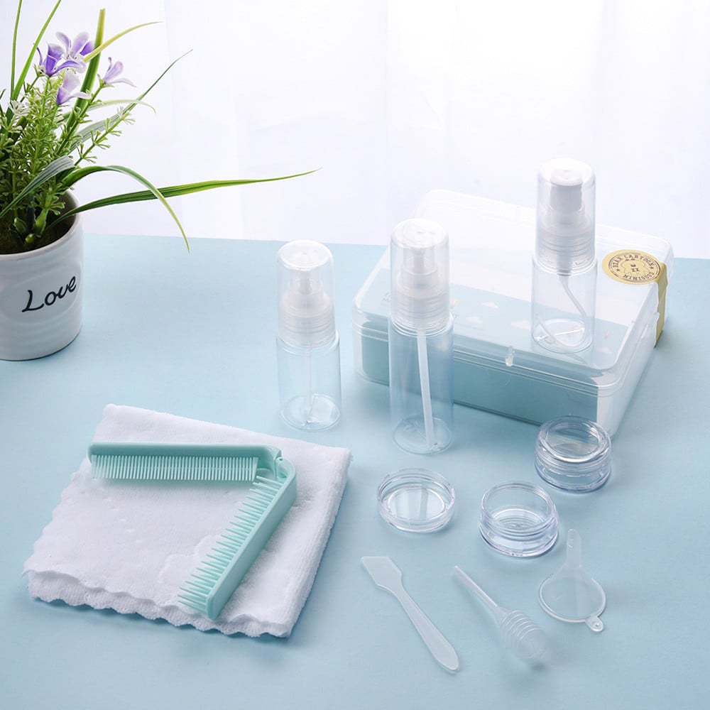 مجموعة عبوات فارغة 11 قطع مع منشفة وجه ومشط مناسبة للسفر